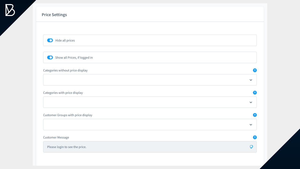 This option ensures that the prices are displayed after the customer logs in.\